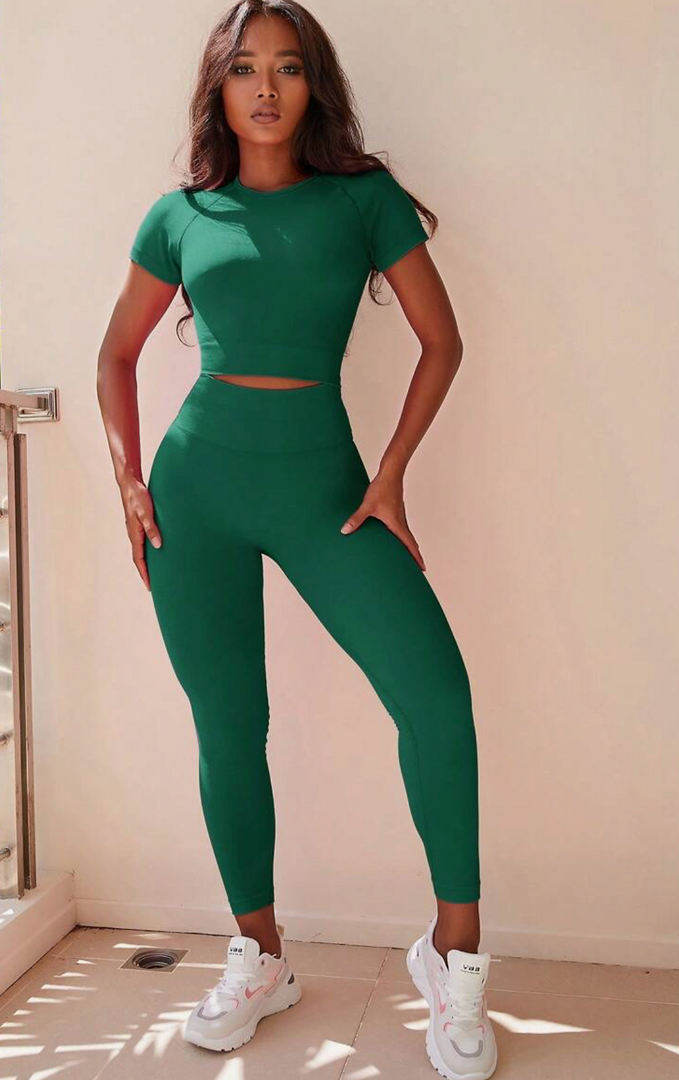 Yoga Basic Women's Solid Color Crew Neck Short Sleeve T-Shirt And Leggings High